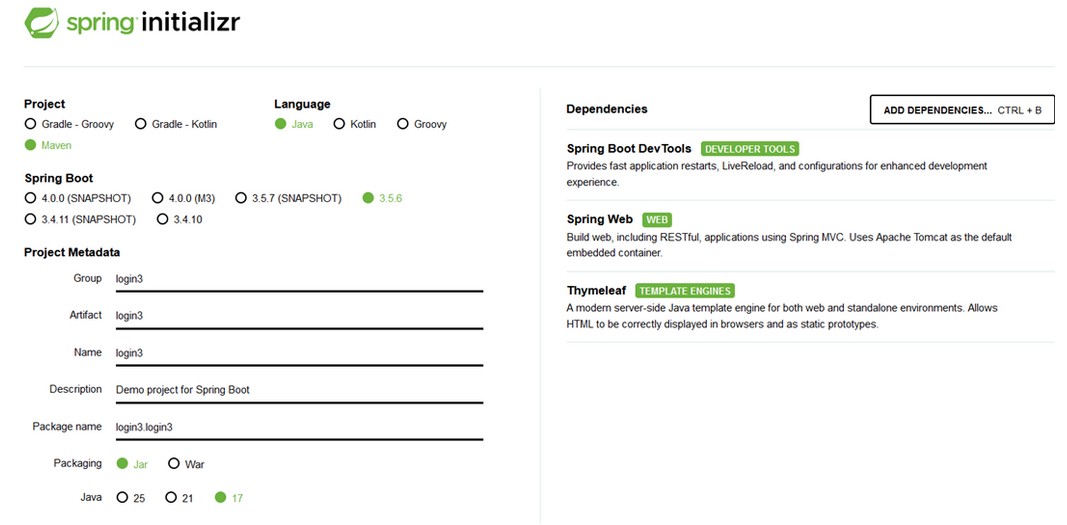 Önce Gerekli dependency leri https://start.spring.io/ sayfasından alıyoruz: